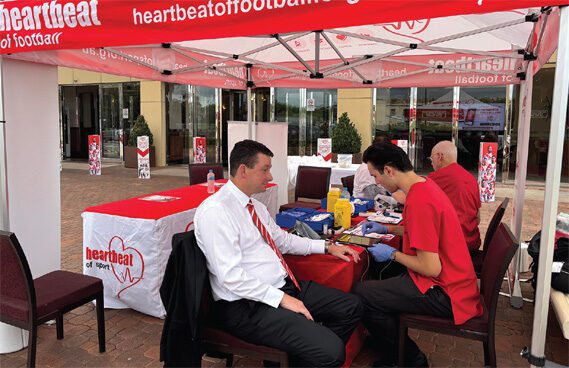 St George CEO Craig Epton getting his heart checked by Heartbeat of football which operates at sport-ing events – local and international