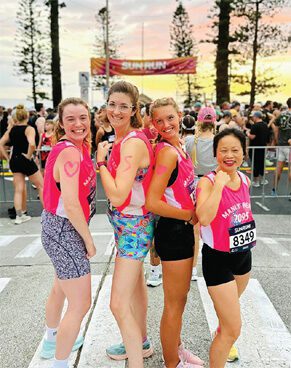 Manly Beach Running Club members Keira, Roz, Flora and Tri love the Sun Run